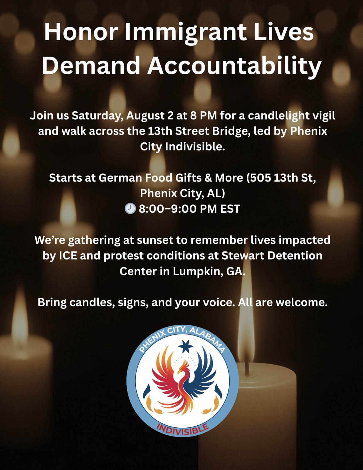 Participants will gather with candles, signs, and quiet reflection, walking slowly across the bridge as a symbol of solidarity with detained immigrants and their families.