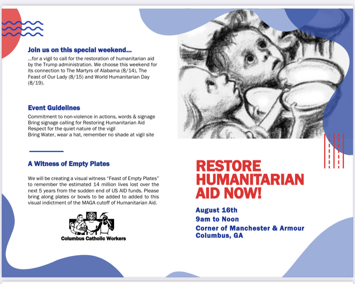Karl is organizing a visibility event and protest remembering the victims of the cancellation of USAID food programs. We will create a Feast of Empty Plates to represent those killed by the sudden end of US AID funds.Bring a plate to add to the collection of empty plates. Please bring your empty plate to the…